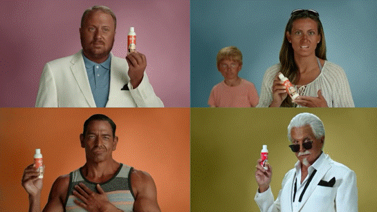 既"可以吃的指甲油"后,風騷的肯德基爺爺又研制了"炸雞味"防曬噴霧,上市后3小時內就銷售一空。肯德基官網上的宣傳視頻也在短時間內獲得了高達51000萬次的點擊量。另有95家新聞報刊對此進行了報道,一時間,"炸雞風"彌漫全球。