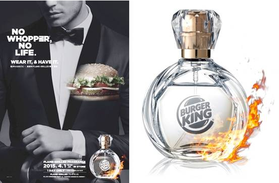 2015年的愚人節,漢堡王推出了一款"牛肉味"香水,并隨之附贈大皇堡一只。廣告文案也十分霸氣:沒有皇堡,人生索然無味。漢堡王香水,讓你尊享美味,也沉迷于氣味。