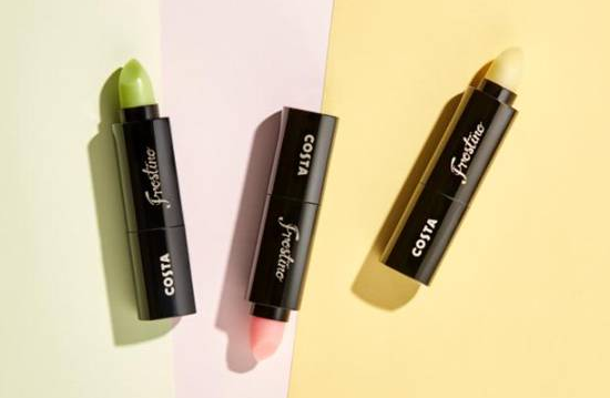 為了宣傳新出的"酷樂冰"系列飲料,Costa咖啡聯合化妝品牌LittleOndine推出了三款唇膏。膏體的顏色分別對應草莓、黃桃和抹茶味的酷樂冰。