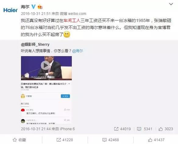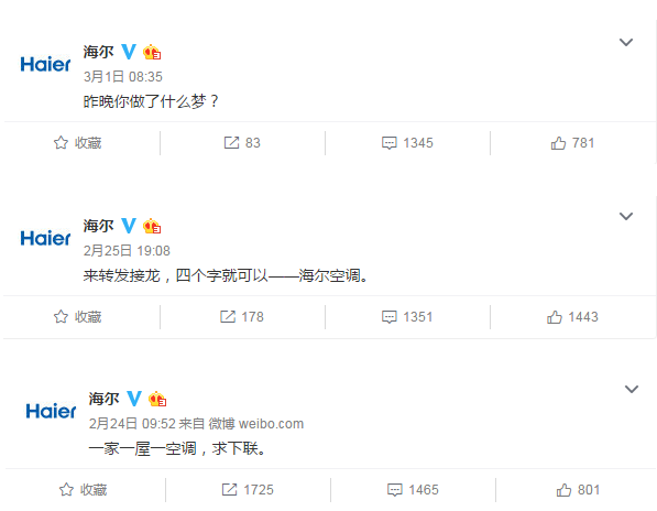 縱觀海爾官微火速躥紅,在于海爾一直不停地