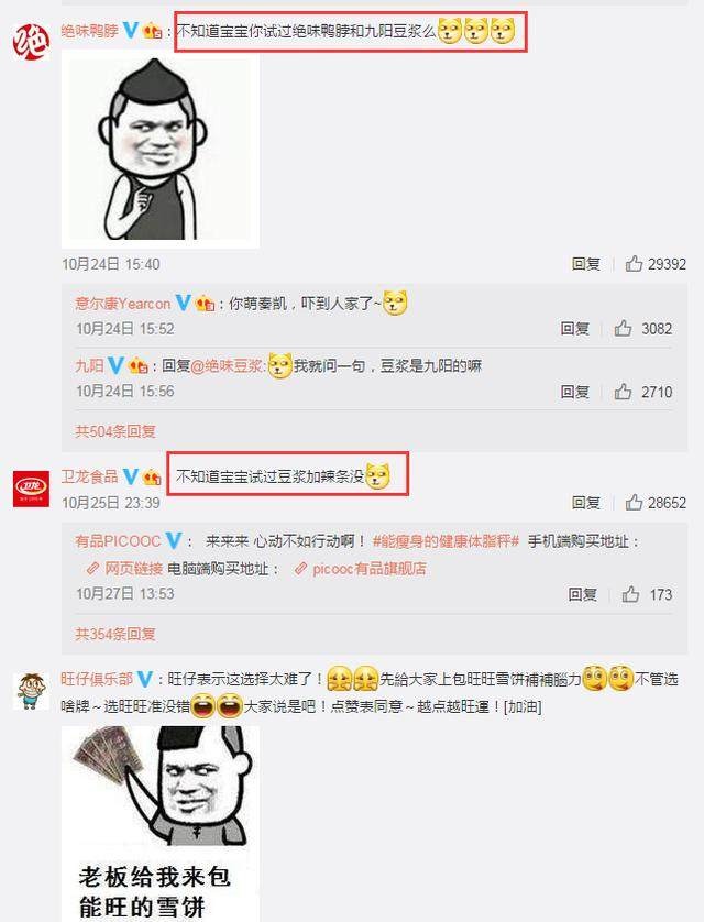 海爾和九陽的對話引得廣大群眾爭相圍觀看熱鬧,由海爾發話后,廣大品牌官微也來紛紛留言。