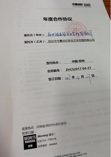 2017年4月27日上午,中寰創(chuàng)世(鄭州)營銷策劃公司&鄭州福晶園幸福食品有限公司在正弘藍堡灣福晶園會議室就“福晶園品牌年度戰(zhàn)略合作”簽署正式協(xié)議。