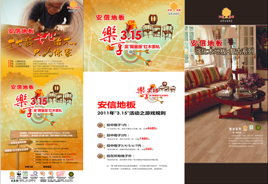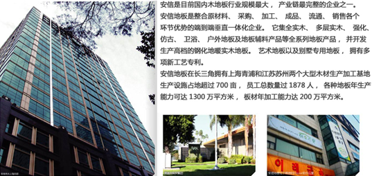 中國十大木地板品牌之一,用了比其他地板品牌都短的時間在河南地區成就了優秀的業績。安信地板的團隊是一個極具戰略眼光和競爭力的團隊。08年3月起,國內有著“木地板之父”稱號的安信偉光地板與中寰創世簽定合作協議,委托中寰創世為其提供鄭州木地板市場調研及08年度廣告投放計劃工作。經過工作組人員的緊張市場調研之后與3月底全面完成市場調研分析報告和廣告投放計劃方案。